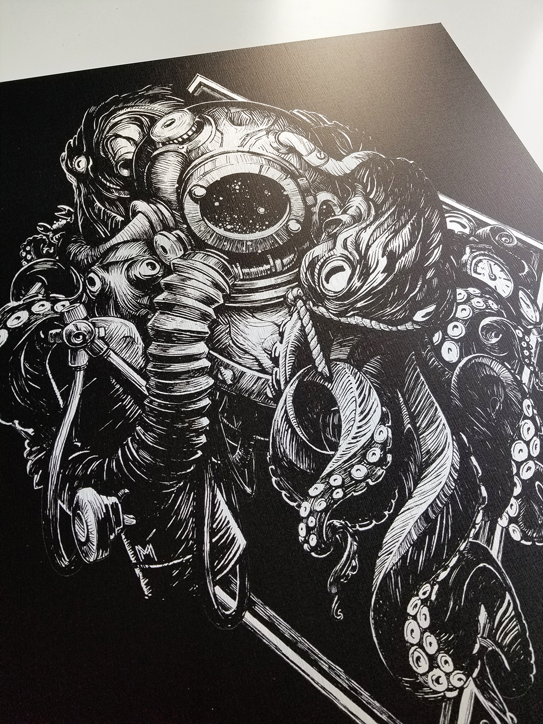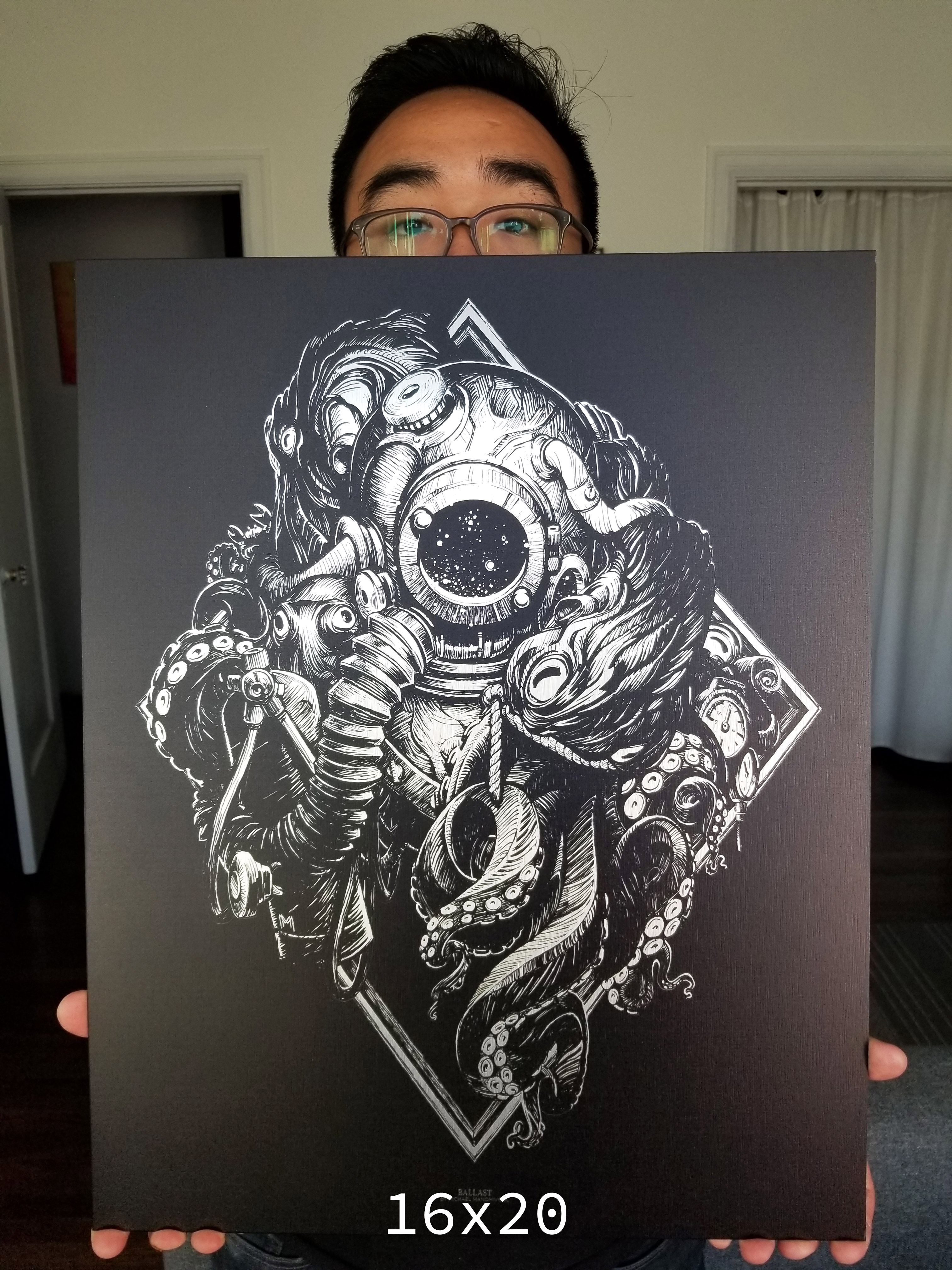 Dibond Aluminum plate print. Two sheets of brushed aluminum bonded to make a very rigid whole.